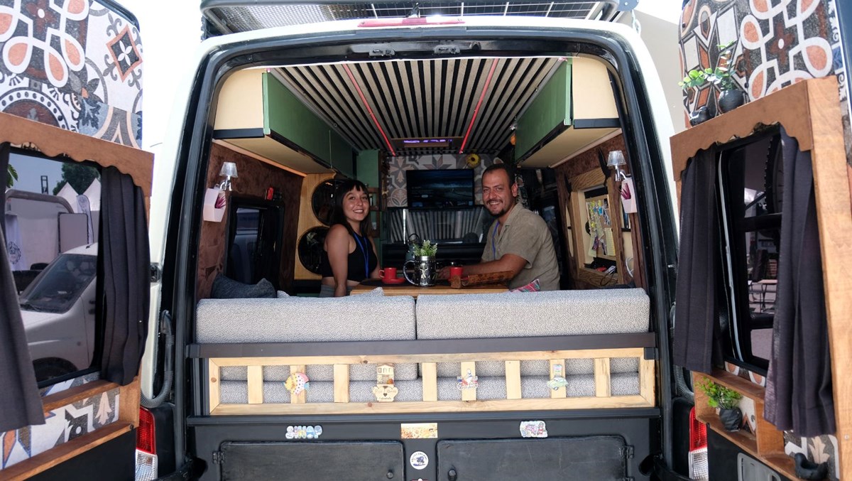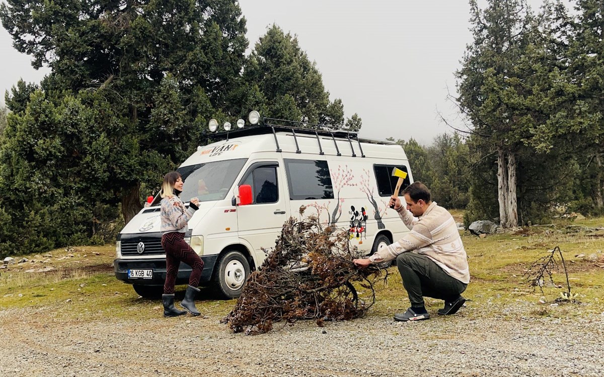 Konya’da 3 yıl önce evlenen ve düğünden sonra işlerinden istifa eden ziraat mühendisi Ömer Türkoğlu (32) ve okul öncesi öğretmeni Büşra Türkoğlu (32) çifti, altın takıları satıp aldıkları minibüsü karavana çevirip Türkiye’yi geziyor.