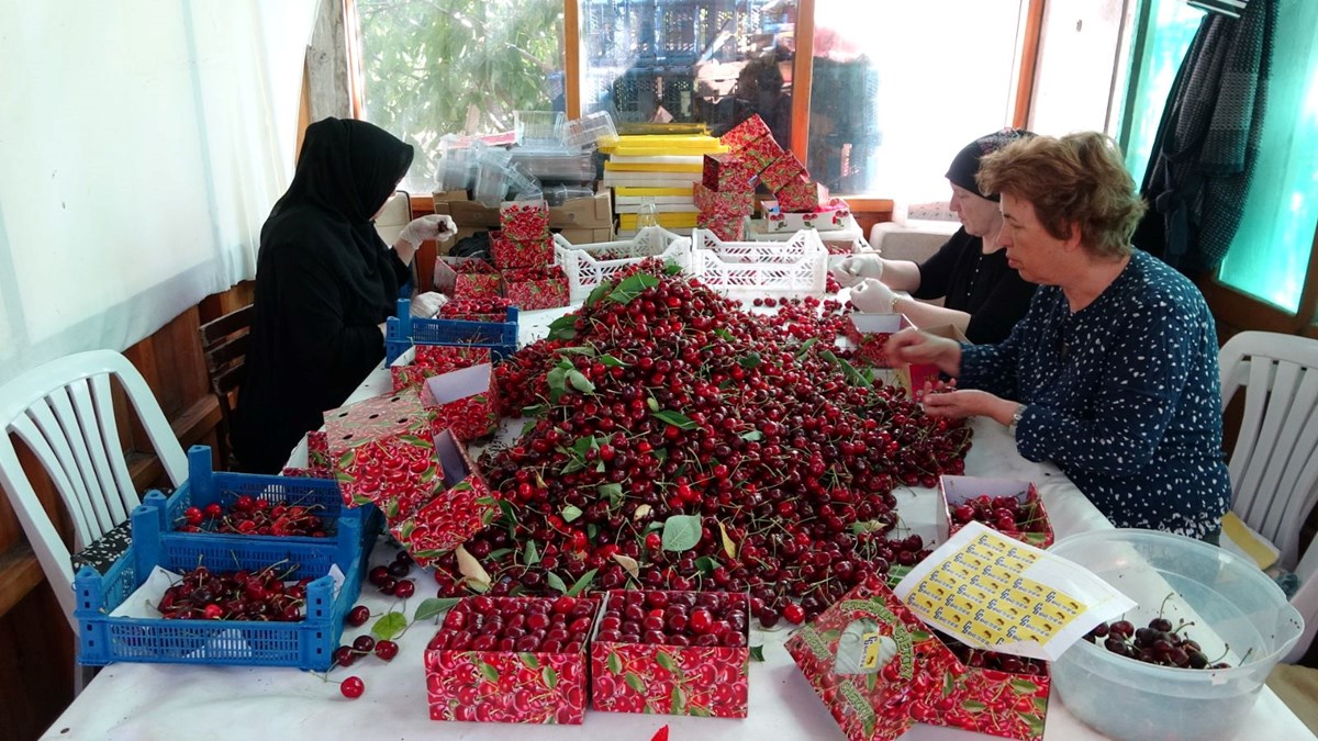 Çanakkale’nin önemli kiraz üretim merkezlerinden Lapseki ilçesinde çay bardağı boğumundan geçmeyen kirazların hasadına başlandı.